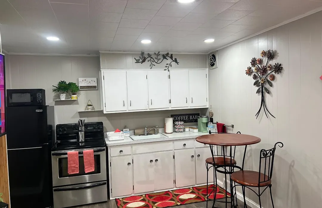 Les clients sont invités à préparer leur propre nourriture dans une cuisine complète.